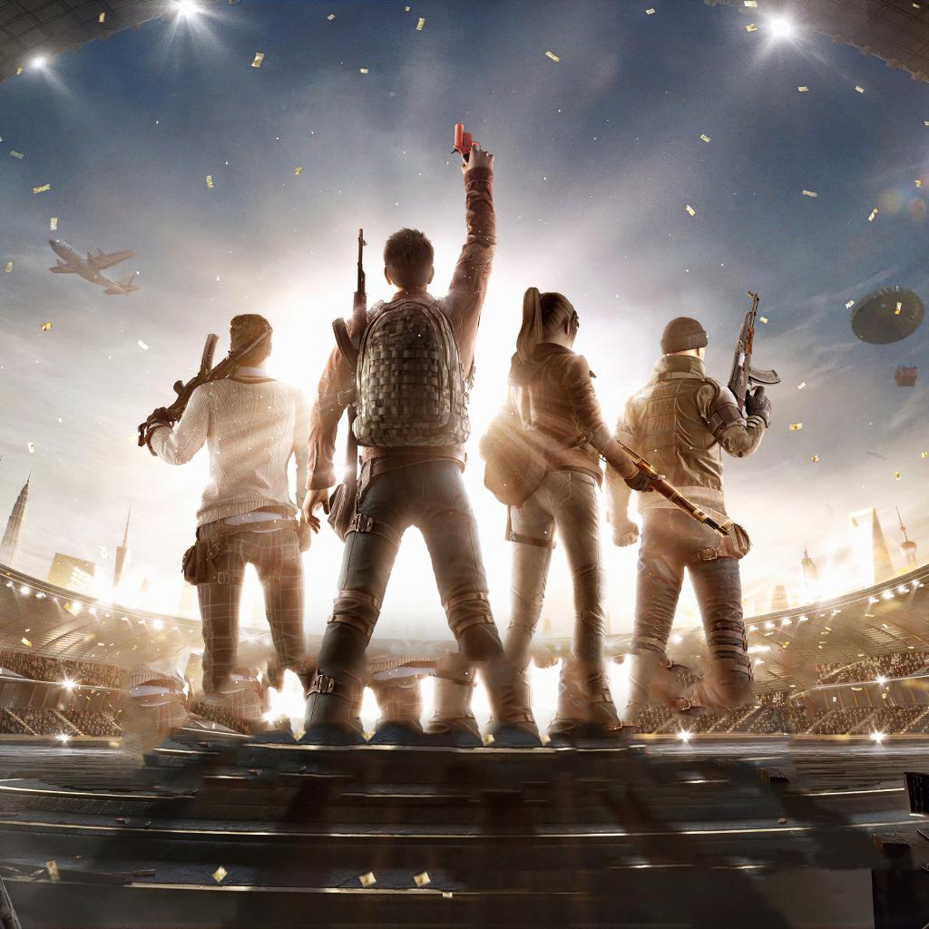 Обои Персонажи компьютерной игры PUBG на стадионе 2020 года