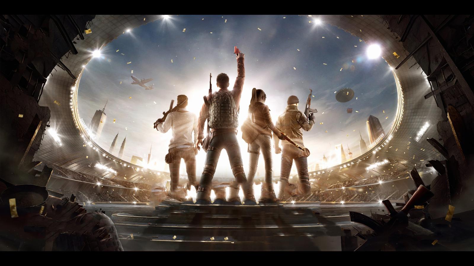 Обои Персонажи компьютерной игры PUBG на стадионе 2020 года