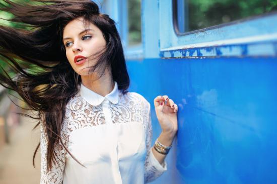 Обои Ветер в волосах у девушки Aurela Skandaj