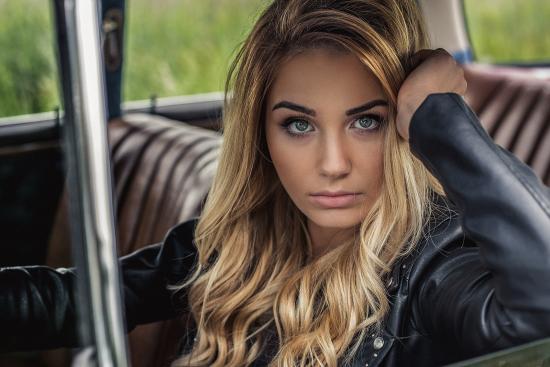 Обои Зеленоглазая блондинка в автомобиле