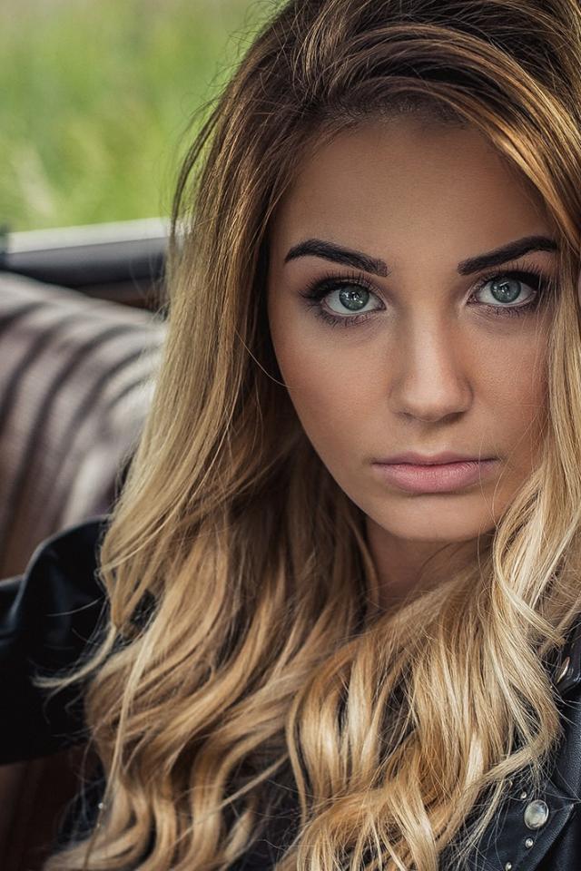 Обои Зеленоглазая блондинка в автомобиле