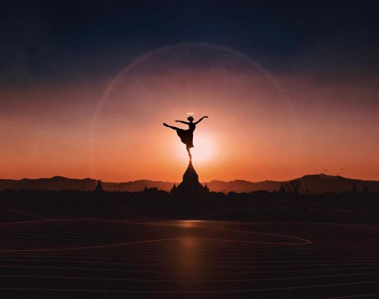 Обои Девушка танцует балет на закате солнца