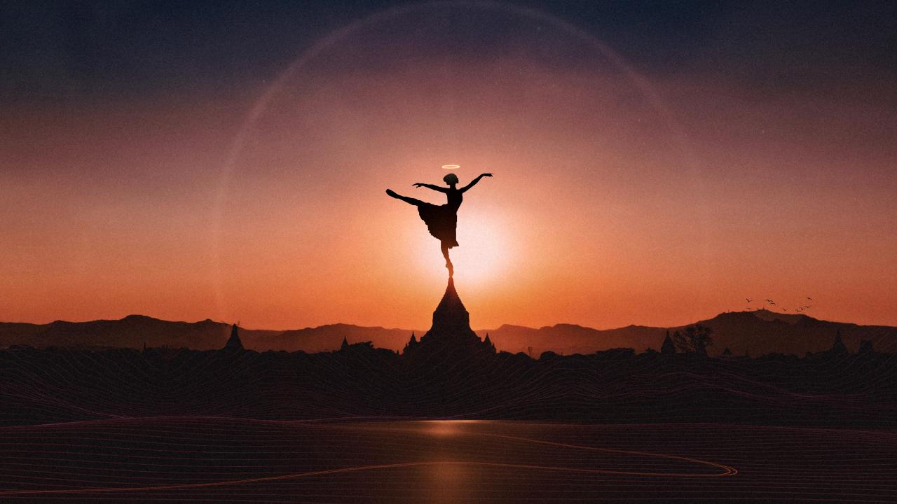 Обои Девушка танцует балет на закате солнца