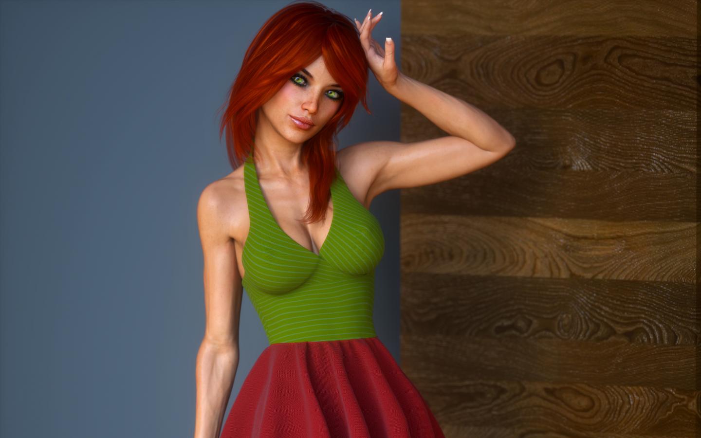 Обои Рыжеволосая 3д девушка у стены