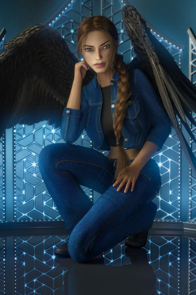 Обои Девушка 3д с большими черными крыльями
