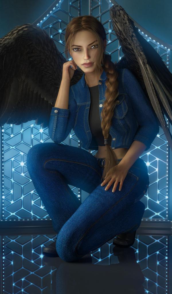Обои Девушка 3д с большими черными крыльями