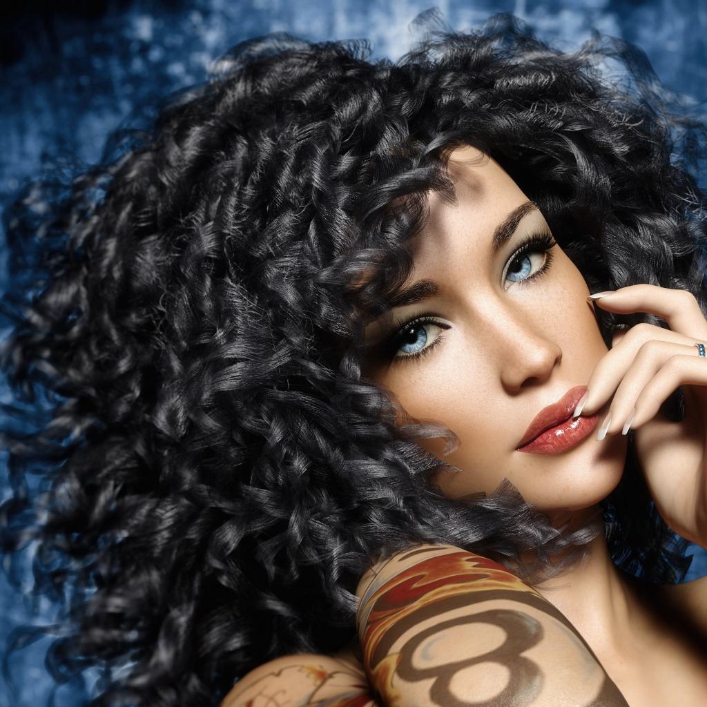 Обои Красивая голубоглазая 3Д девушка с черными волосами