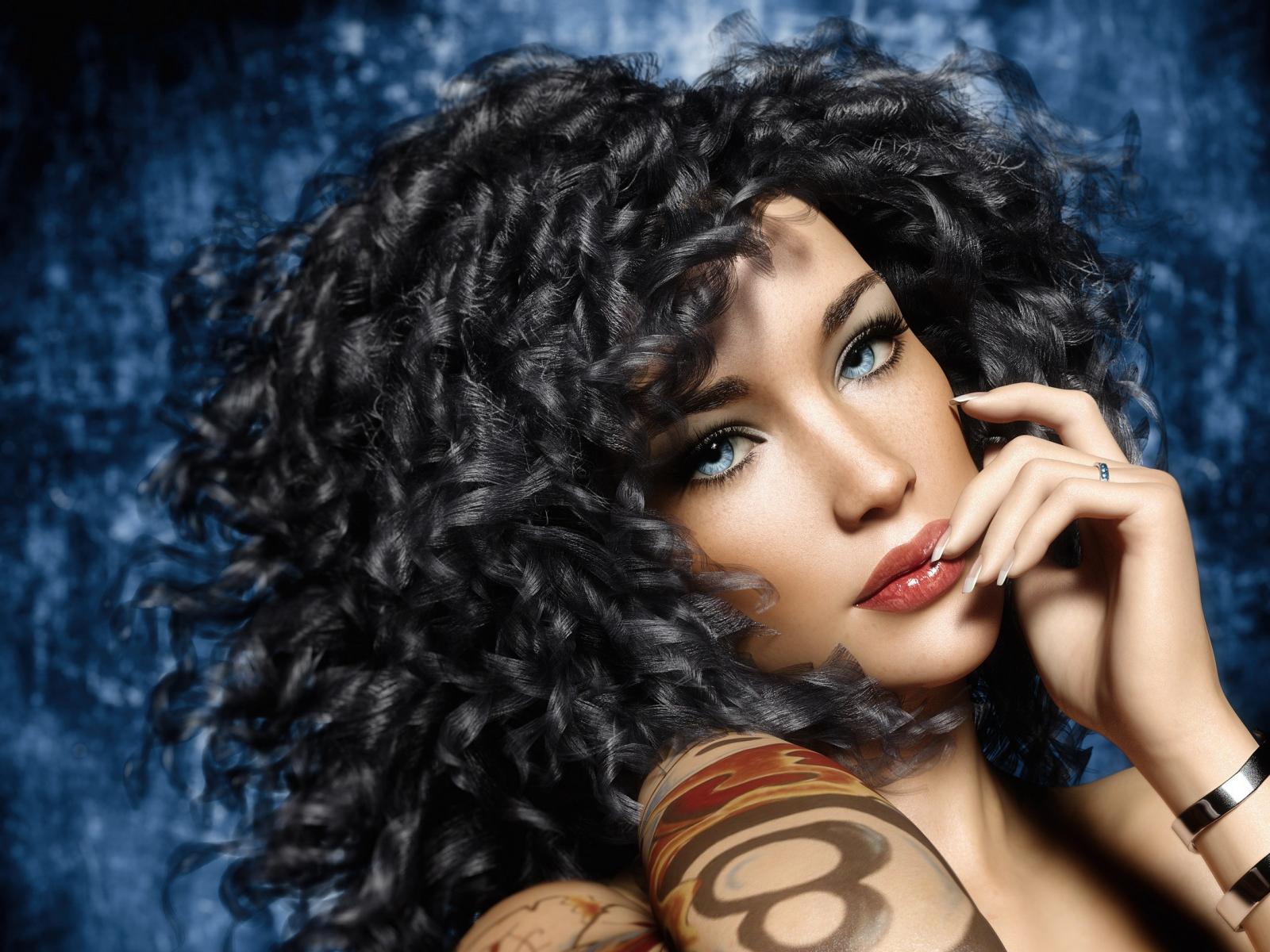 Обои Красивая голубоглазая 3Д девушка с черными волосами