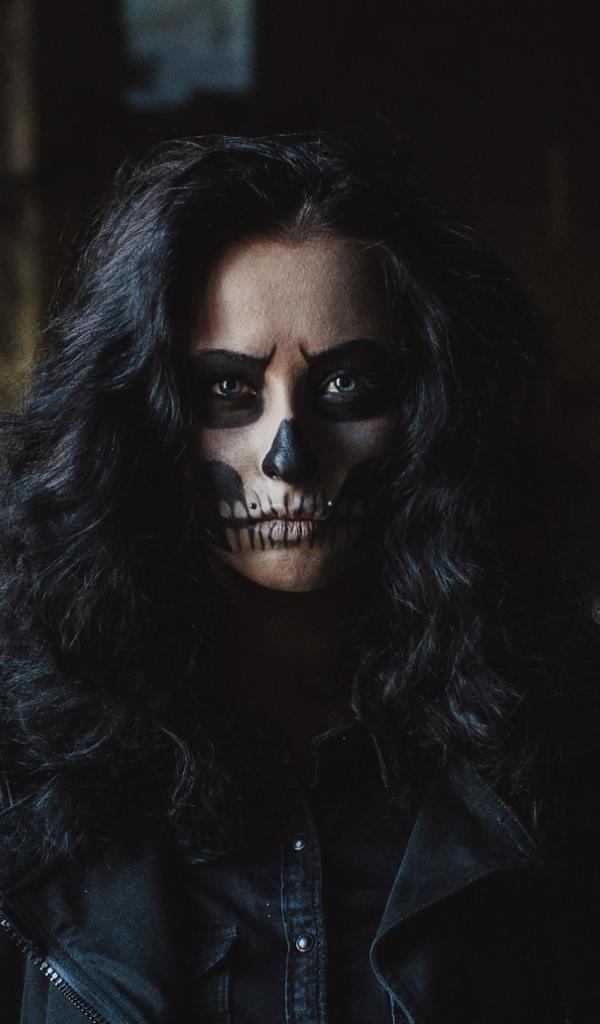 Обои Девушка с черными волосами и разрисованным лицом