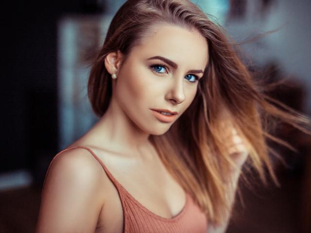 Обои Красивая голубоглазая девушка с распущенными волосами