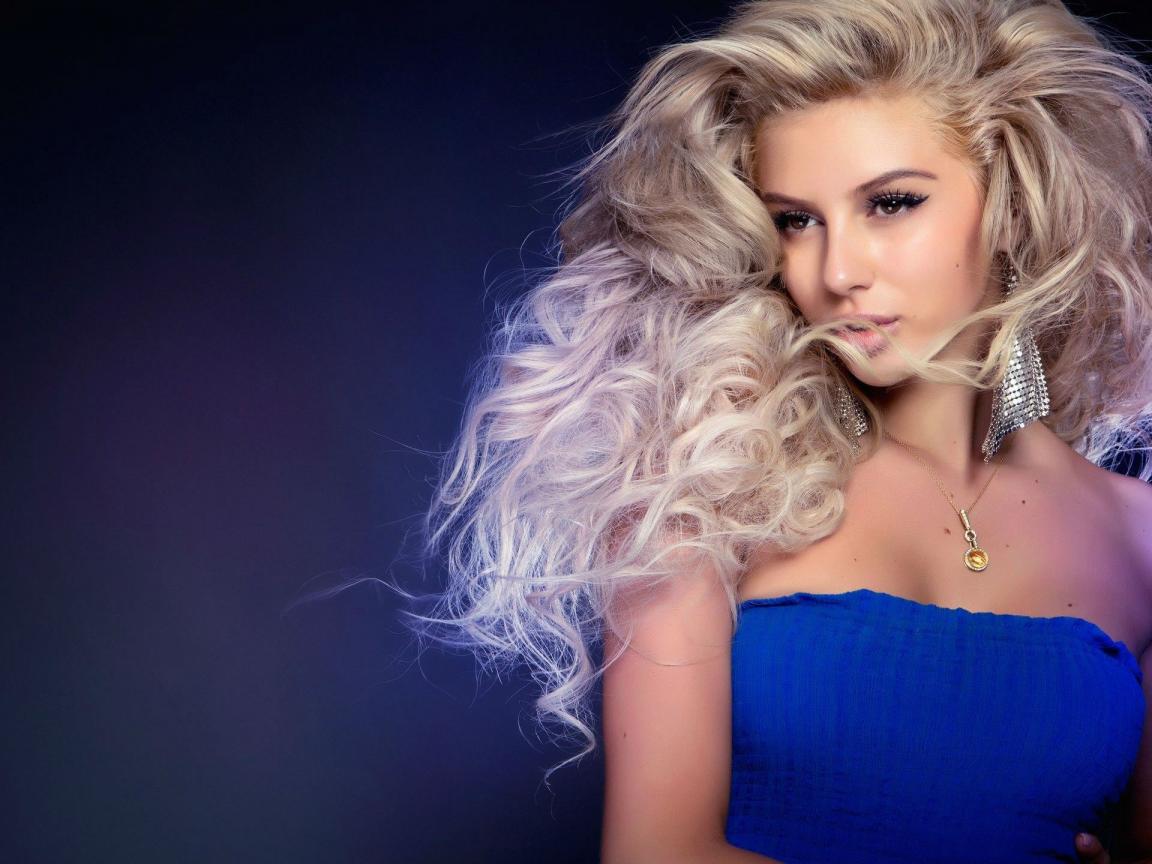 Обои Красивая девушка блондинка в синем платье