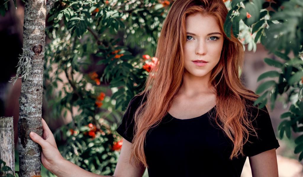 Обои Красивая девушка с рыжими длинными волосами