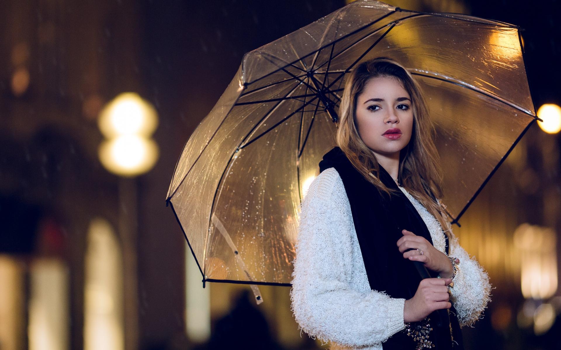 Обои Молодая красивая девушка под зонтом