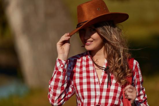 Обои Красивая девушка брюнетка в ковбойской шляпе