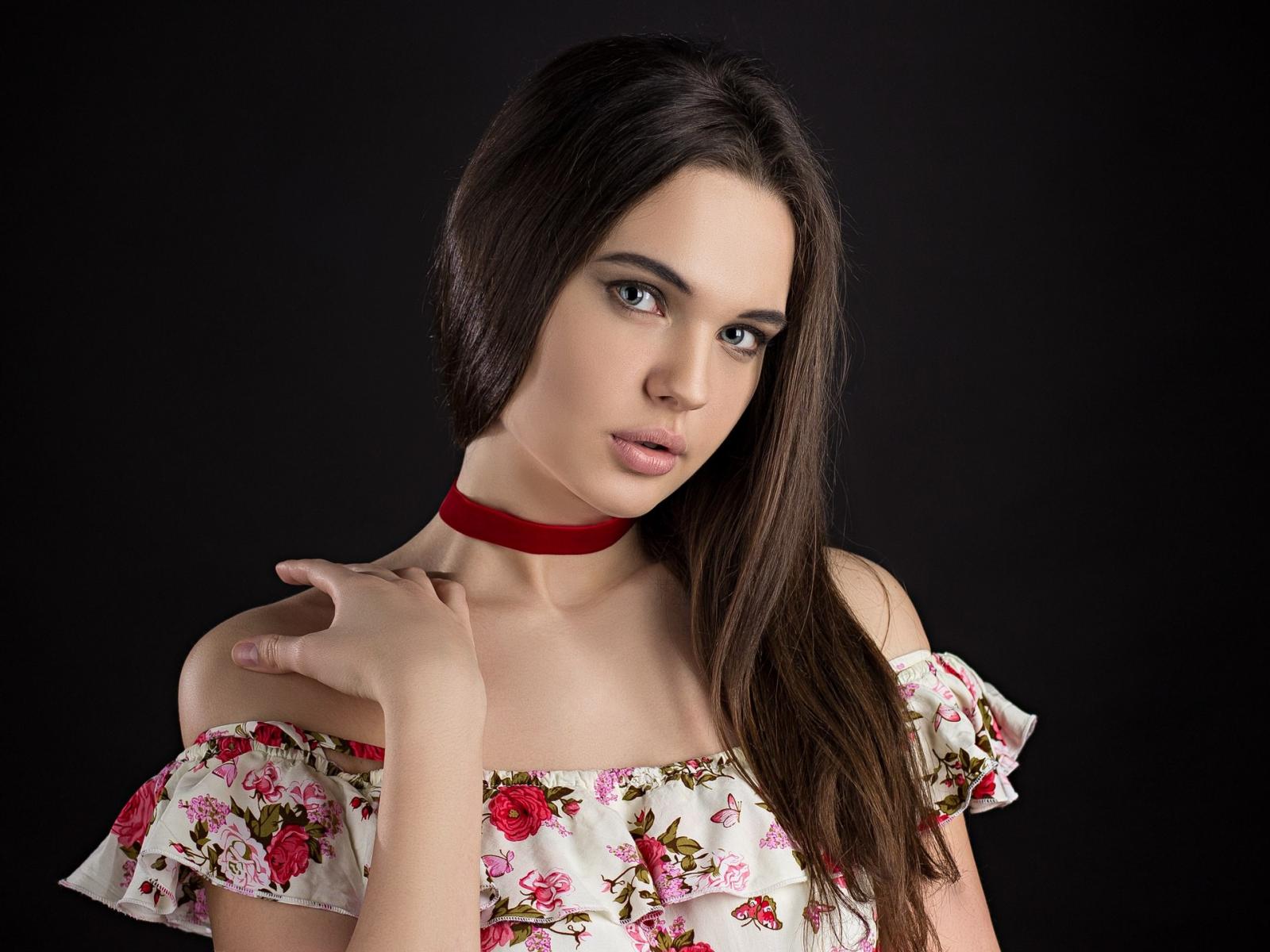 Обои Брюнетка с длинными волосами в красивом сарафане