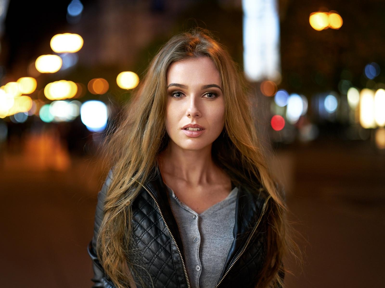 Обои Длинноволосая девушка в черной куртке