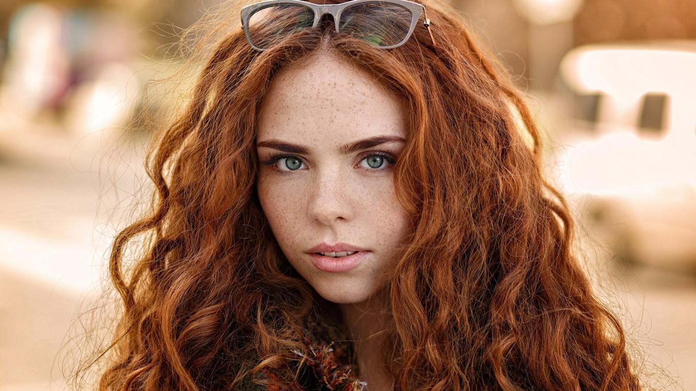 Обои Рыжеволосая красивая девушка с зелеными глазами