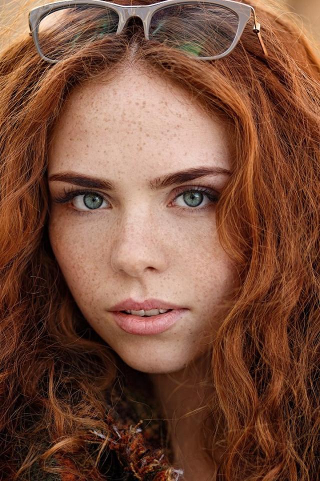 Обои Рыжеволосая красивая девушка с зелеными глазами