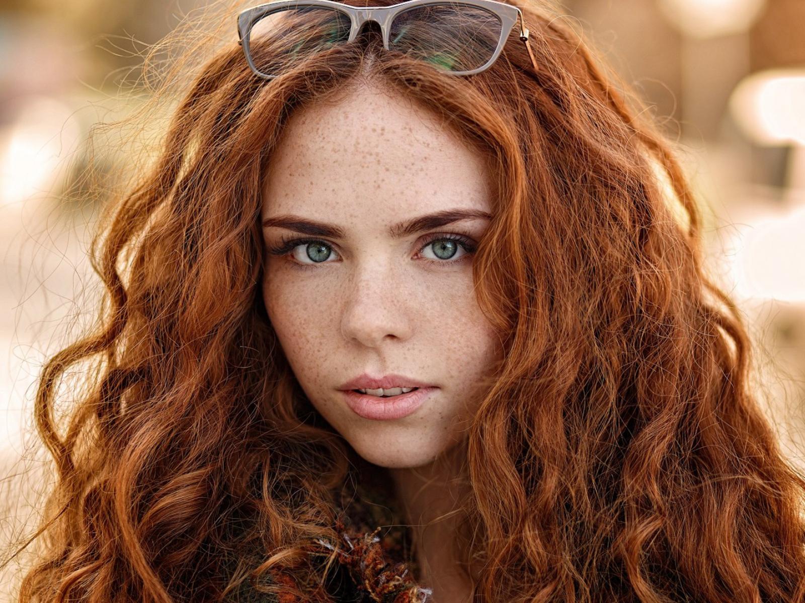 Обои Рыжеволосая красивая девушка с зелеными глазами