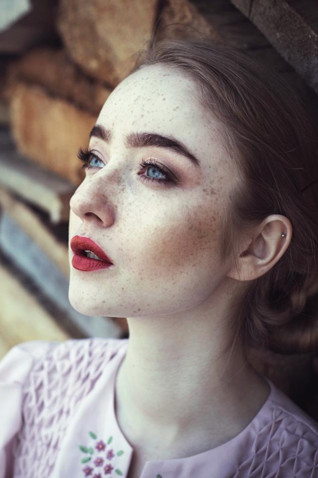 Обои Голубоглазая девушка с веснушками на лице