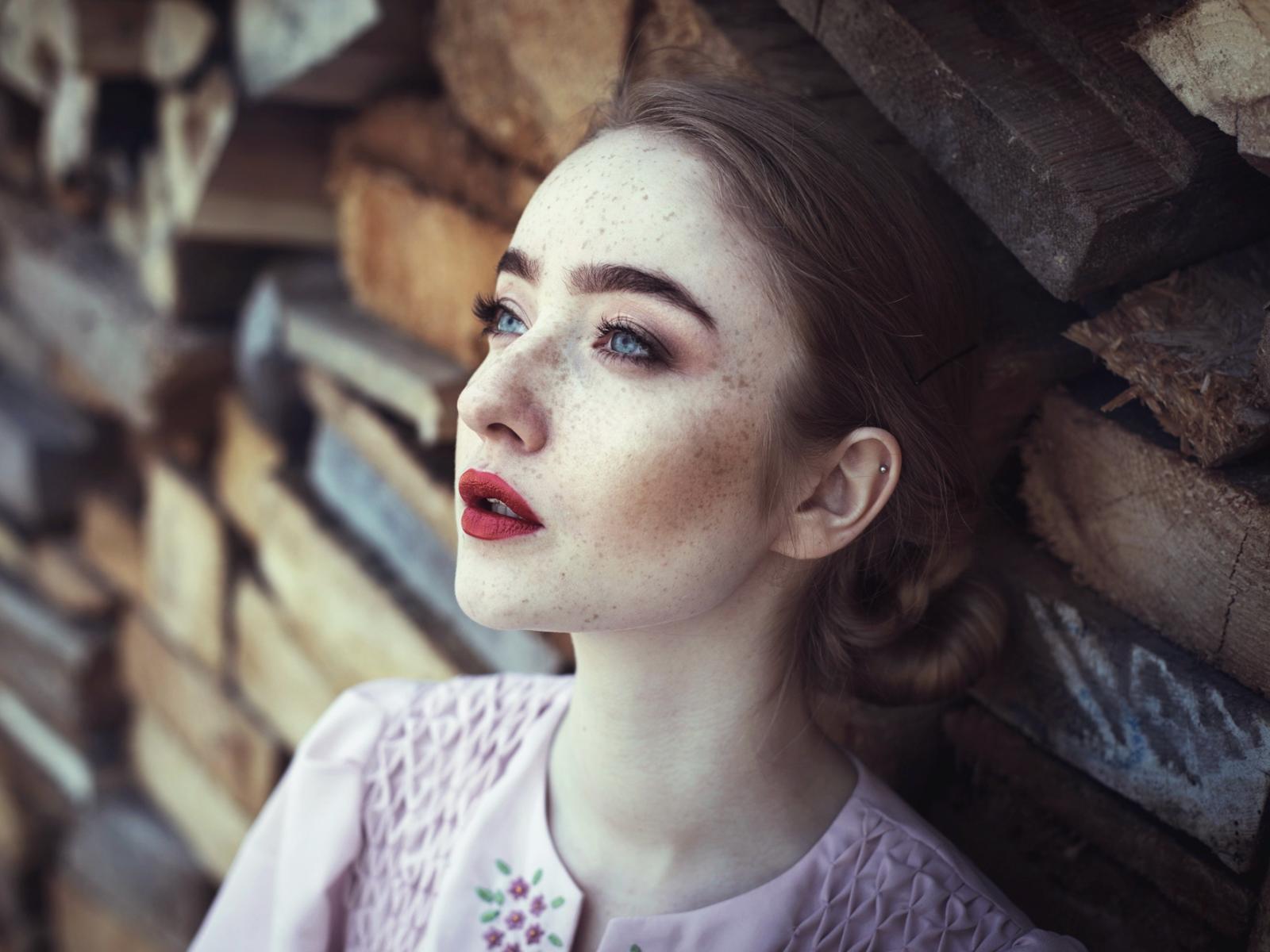 Обои Голубоглазая девушка с веснушками на лице
