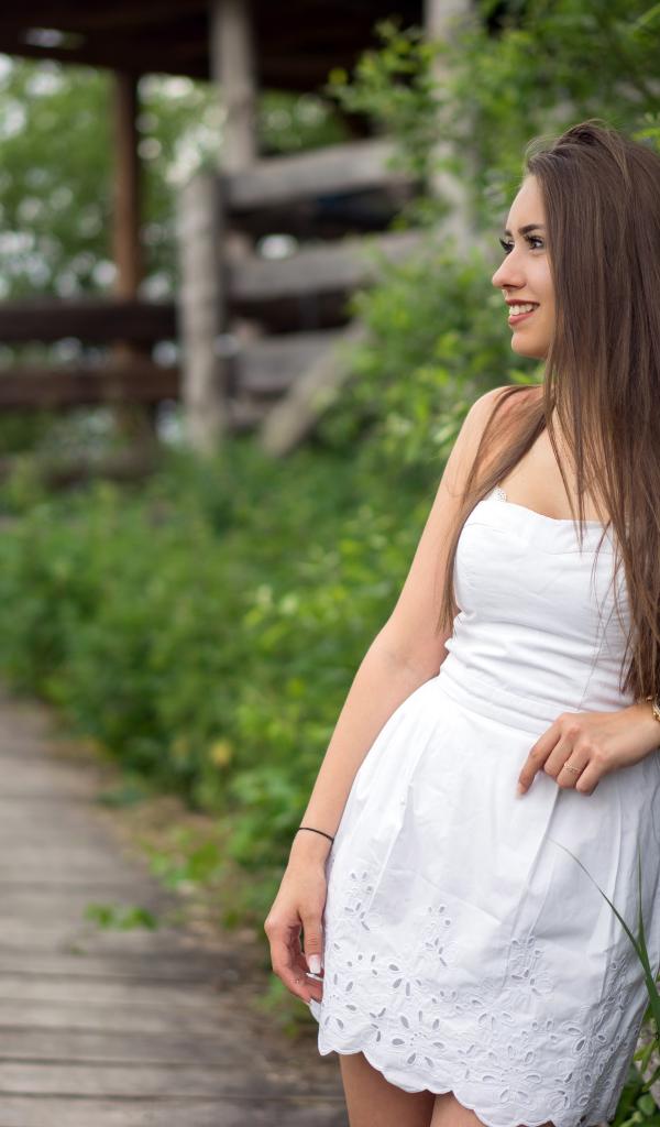 Обои Красивая длинноволосая девушка модель в белом платье