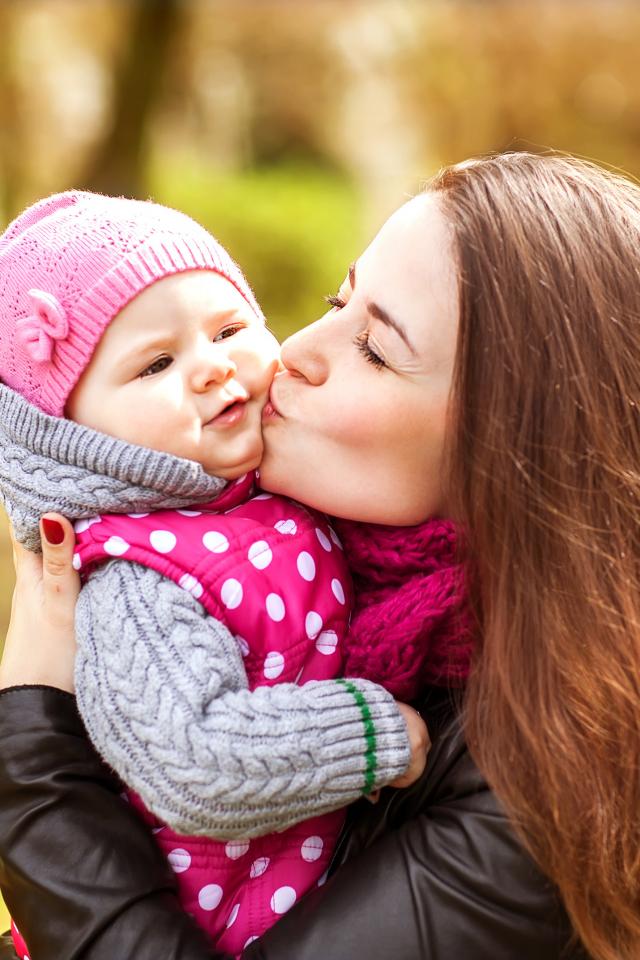 Обои Красивая девушка держит в руках маленького ребенка
