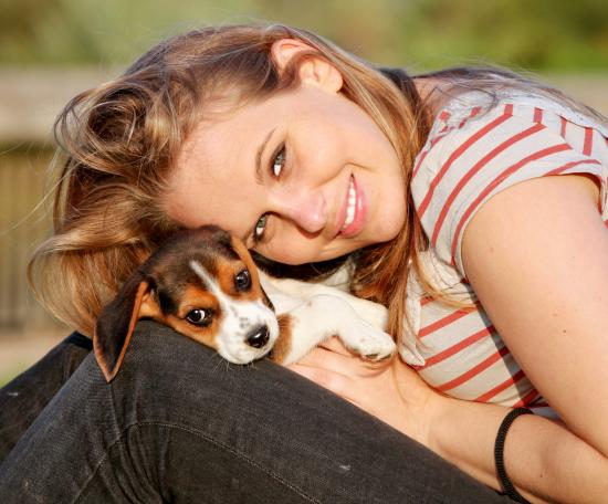 Обои Женщина с щенком на руках
