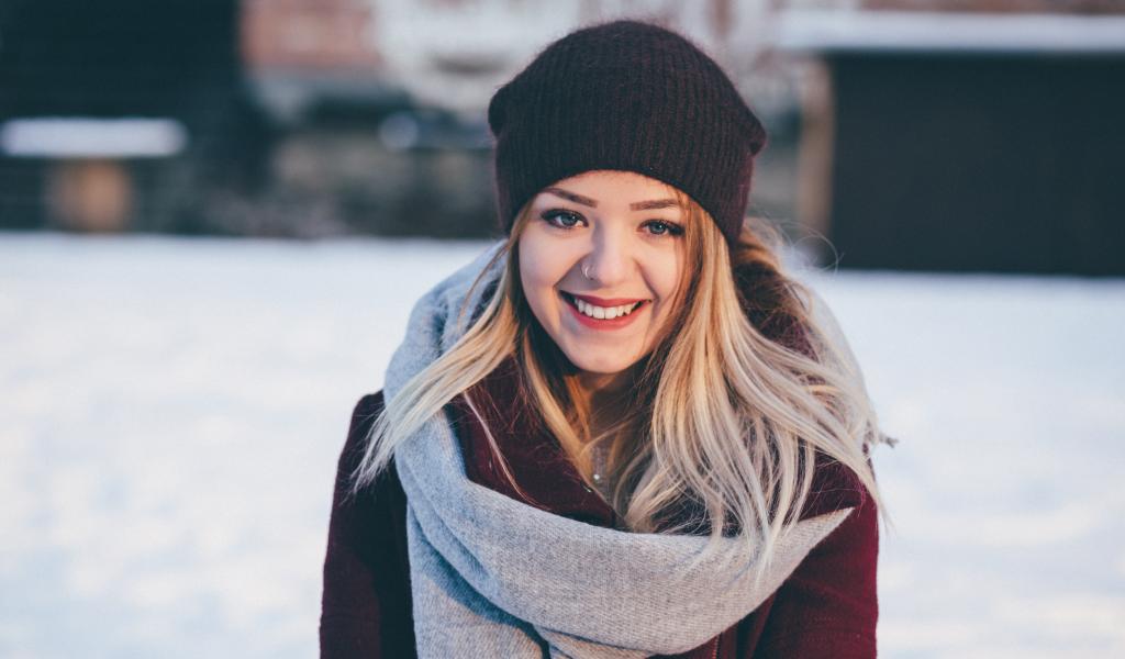 Обои Красивая улыбающаяся девушка в зимней шапке