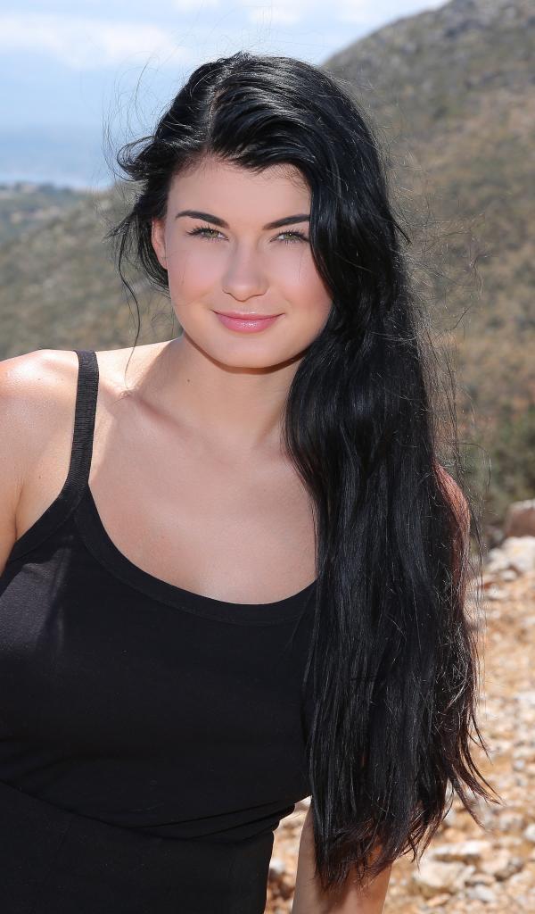 Обои Красивая молодая брюнетка в черном