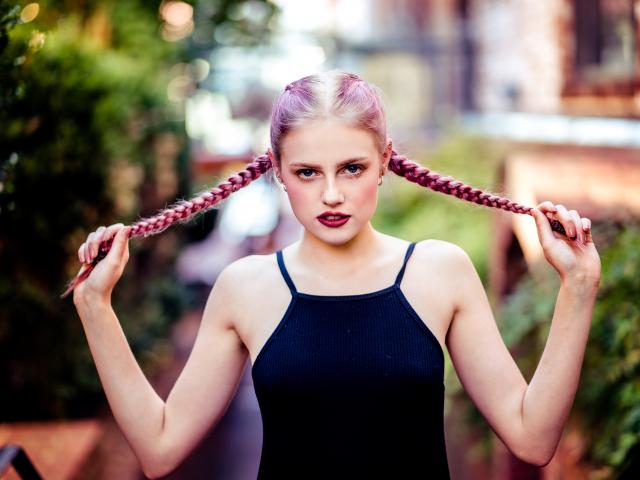 Обои Молодая девушка с розовыми косами на голове