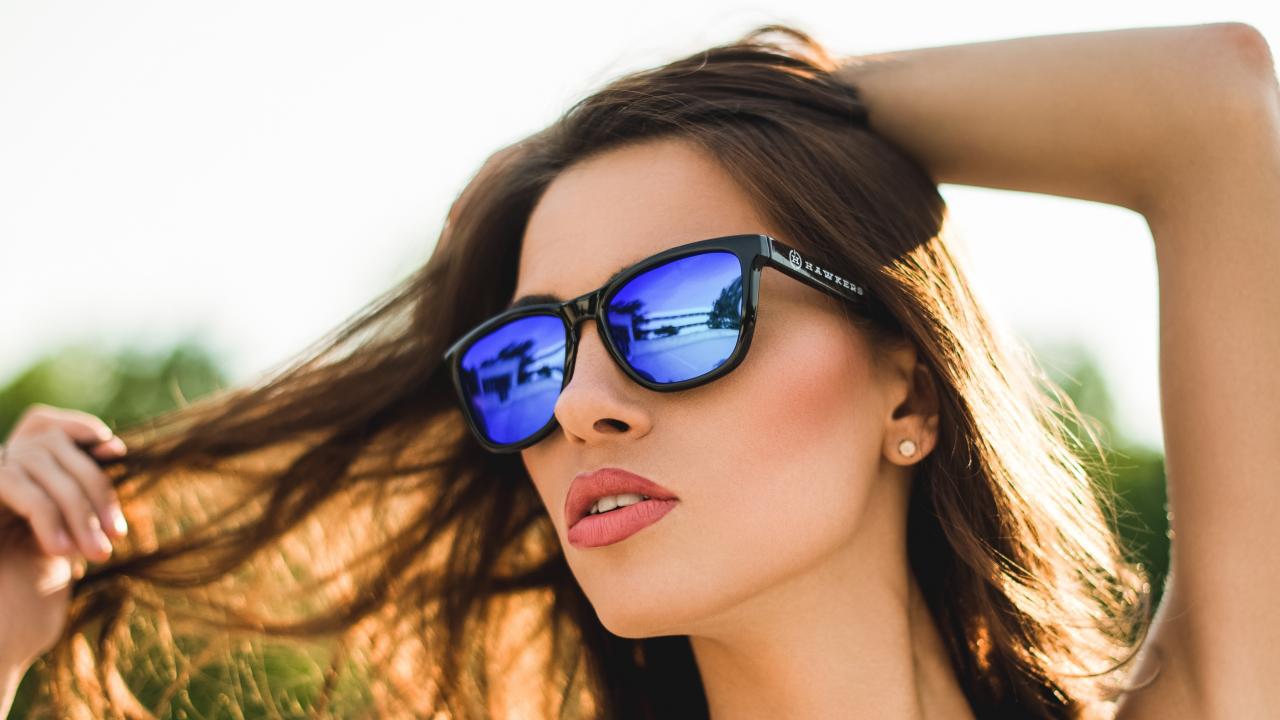 Обои Красивая молодая шатенка в солнечных очках
