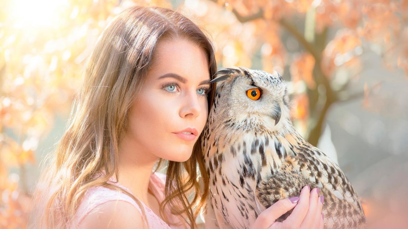 Обои Красивая голубоглазая девушка с совой