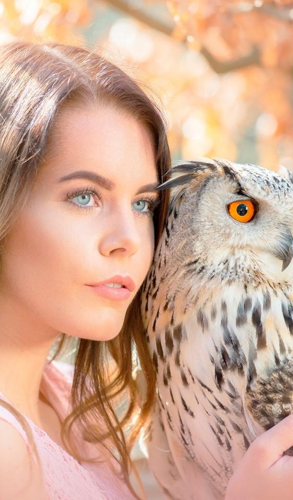 Обои Красивая голубоглазая девушка с совой