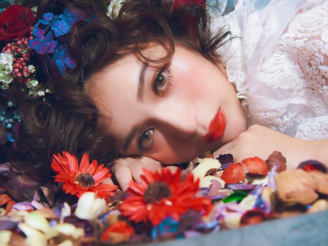 Обои Молодая красивая девушка лежит цветами в волосах