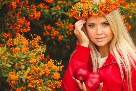 Обои Красивая блондинка с венком из рябины на голове