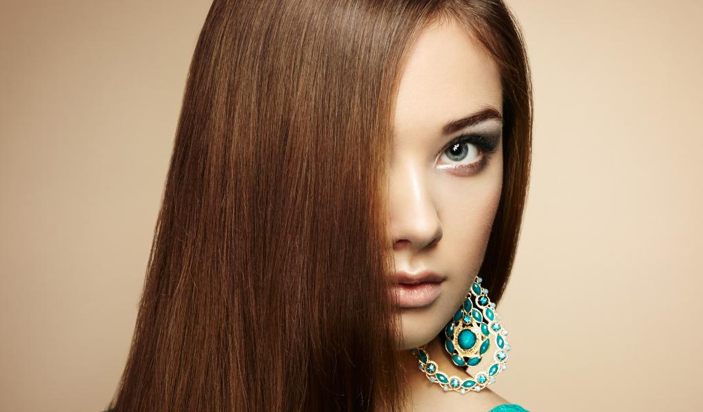 Обои Молодая эффектная девушка с бирюзовыми серьгами