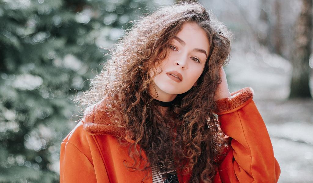Обои Красивая девушка шатенка в красной куртке