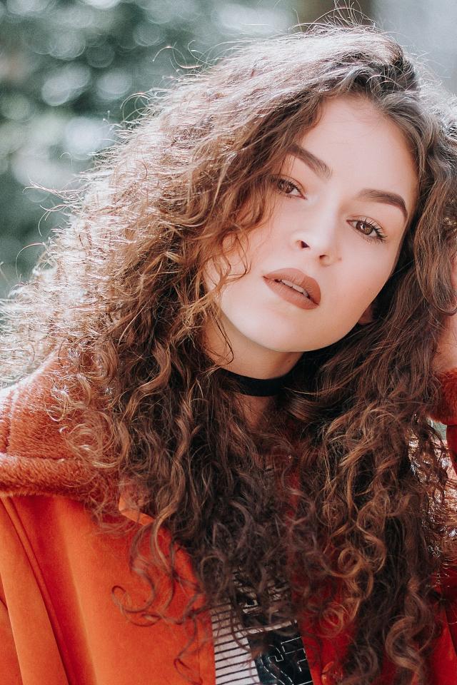 Обои Красивая девушка шатенка в красной куртке