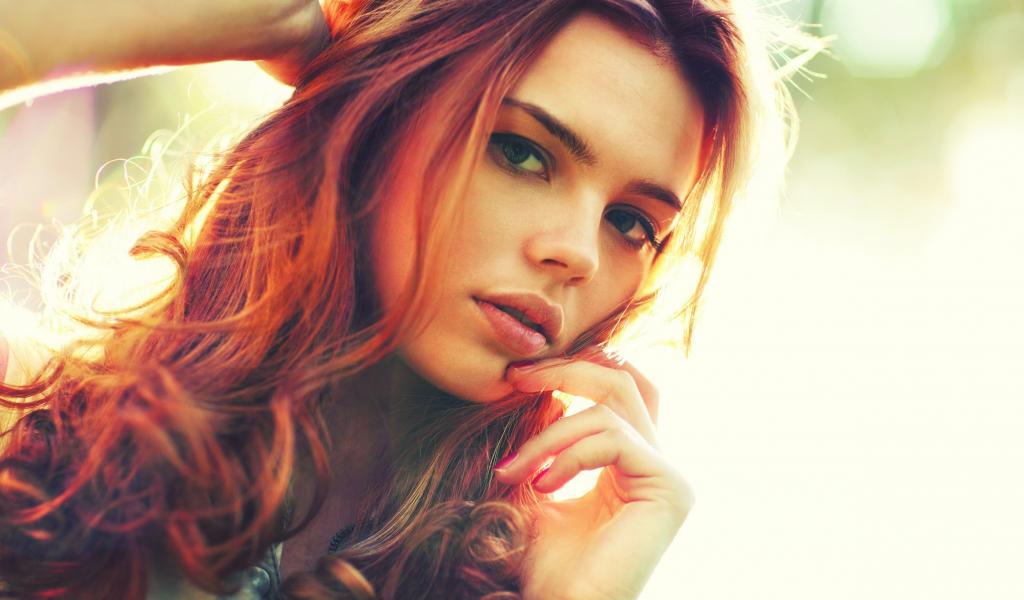 Обои Красивая яркая рыжеволосая девушка с зелеными глазами