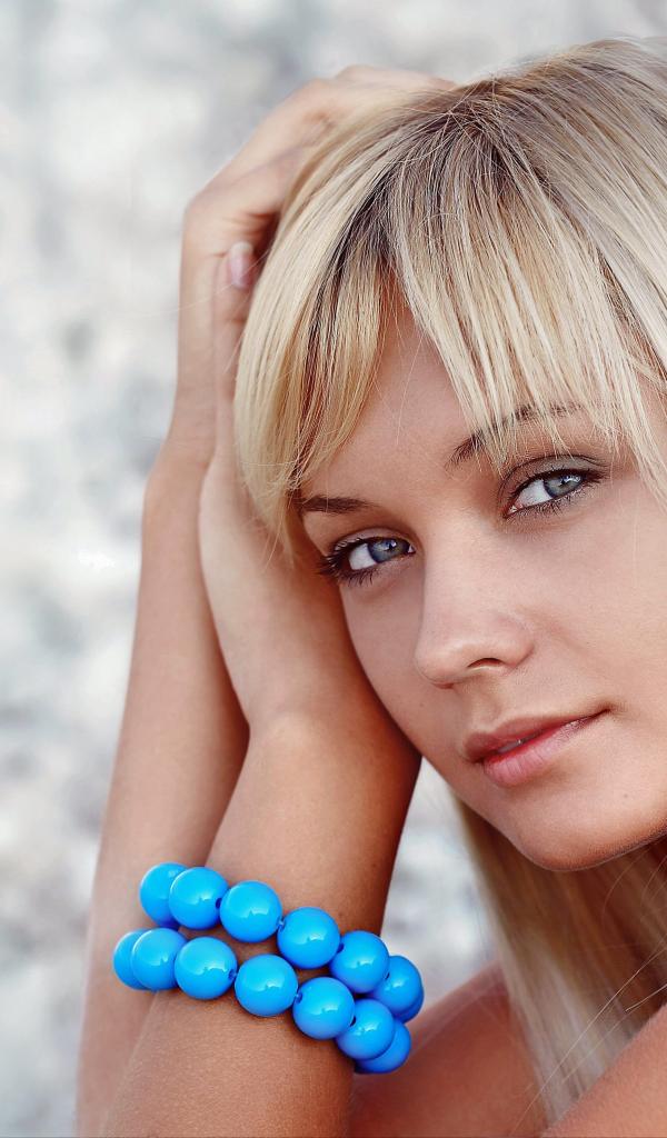 Обои Красивая блондинка с большим голубым браслетом на руке