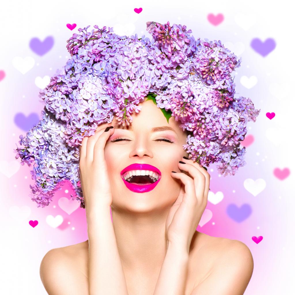 » Обои Улыбающаяся девушка с цветами сирени на голове