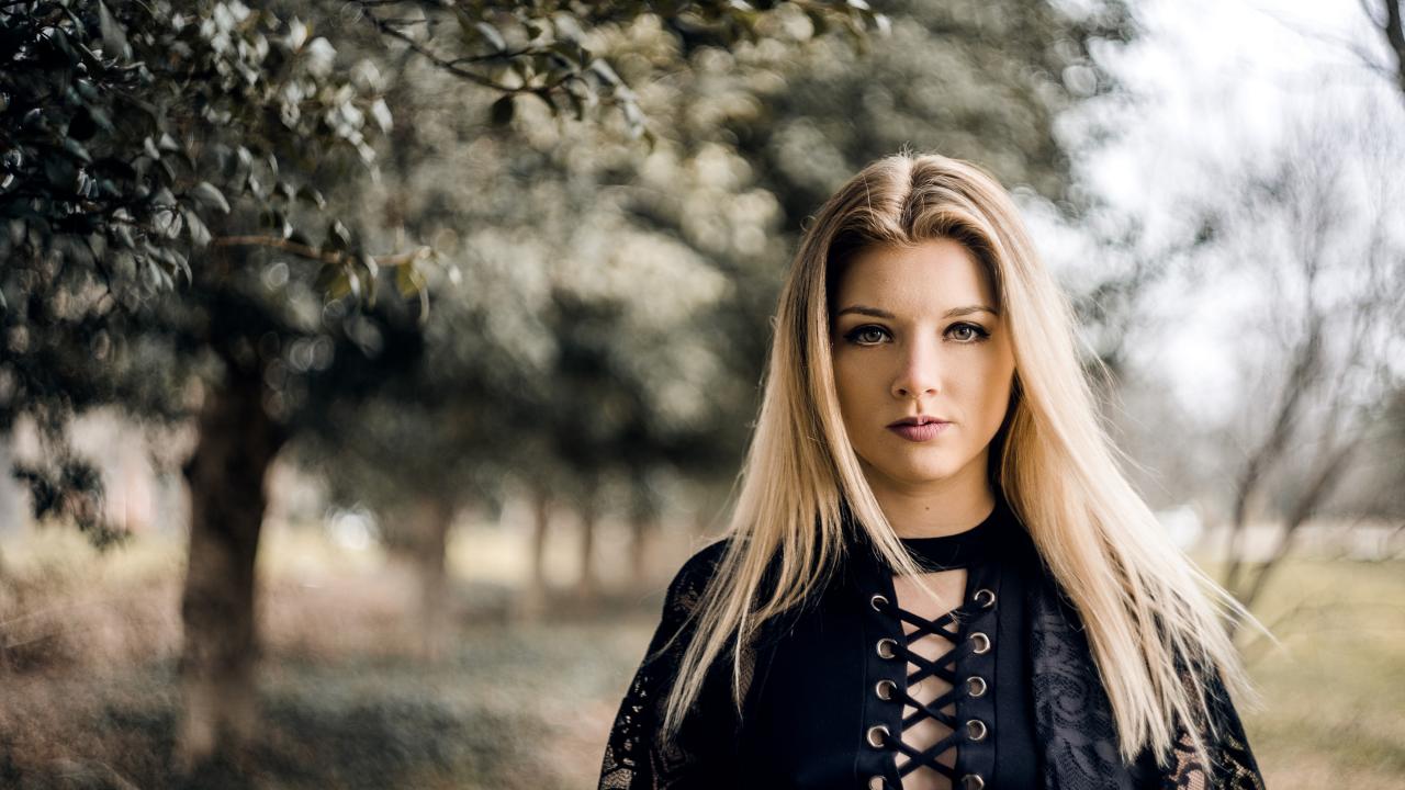Обои Красивая блондинка в черном платье