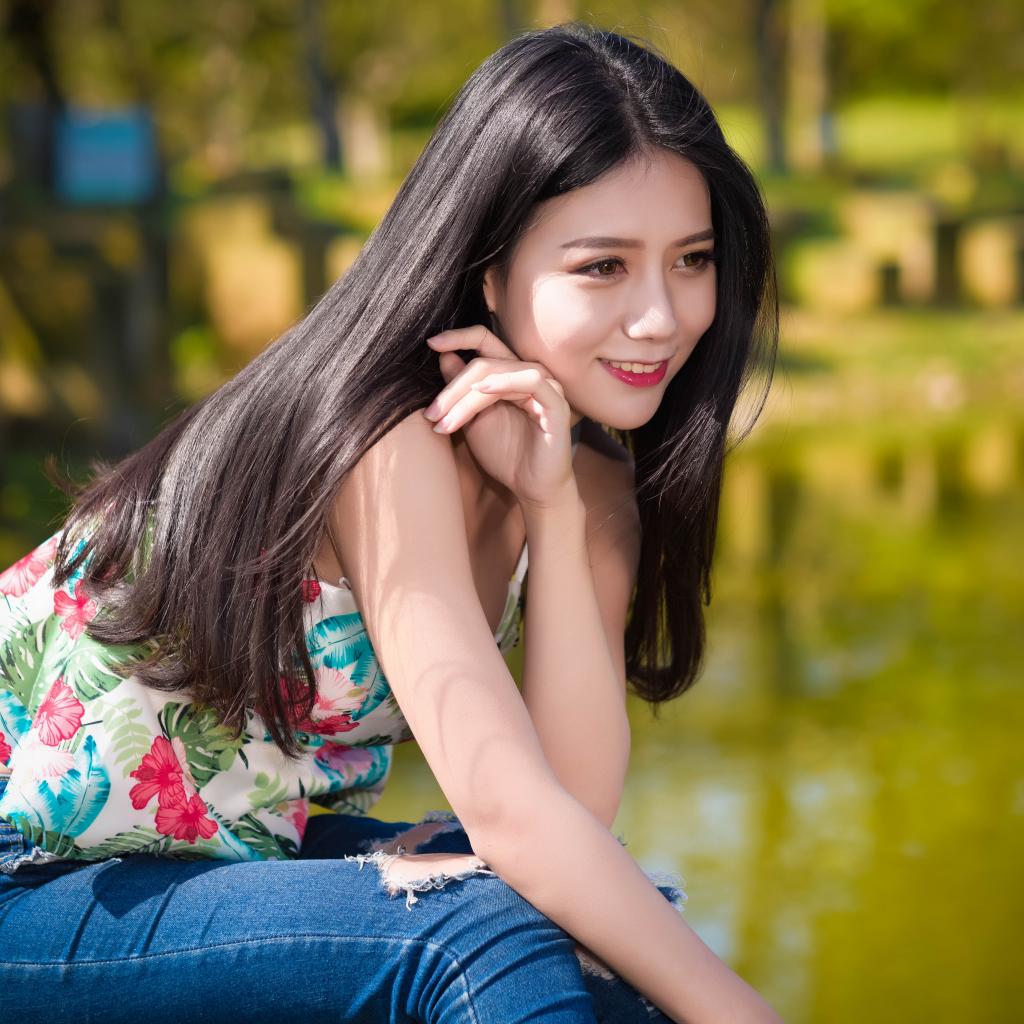Обои Улыбающаяся красивая девушка азиатка у воды