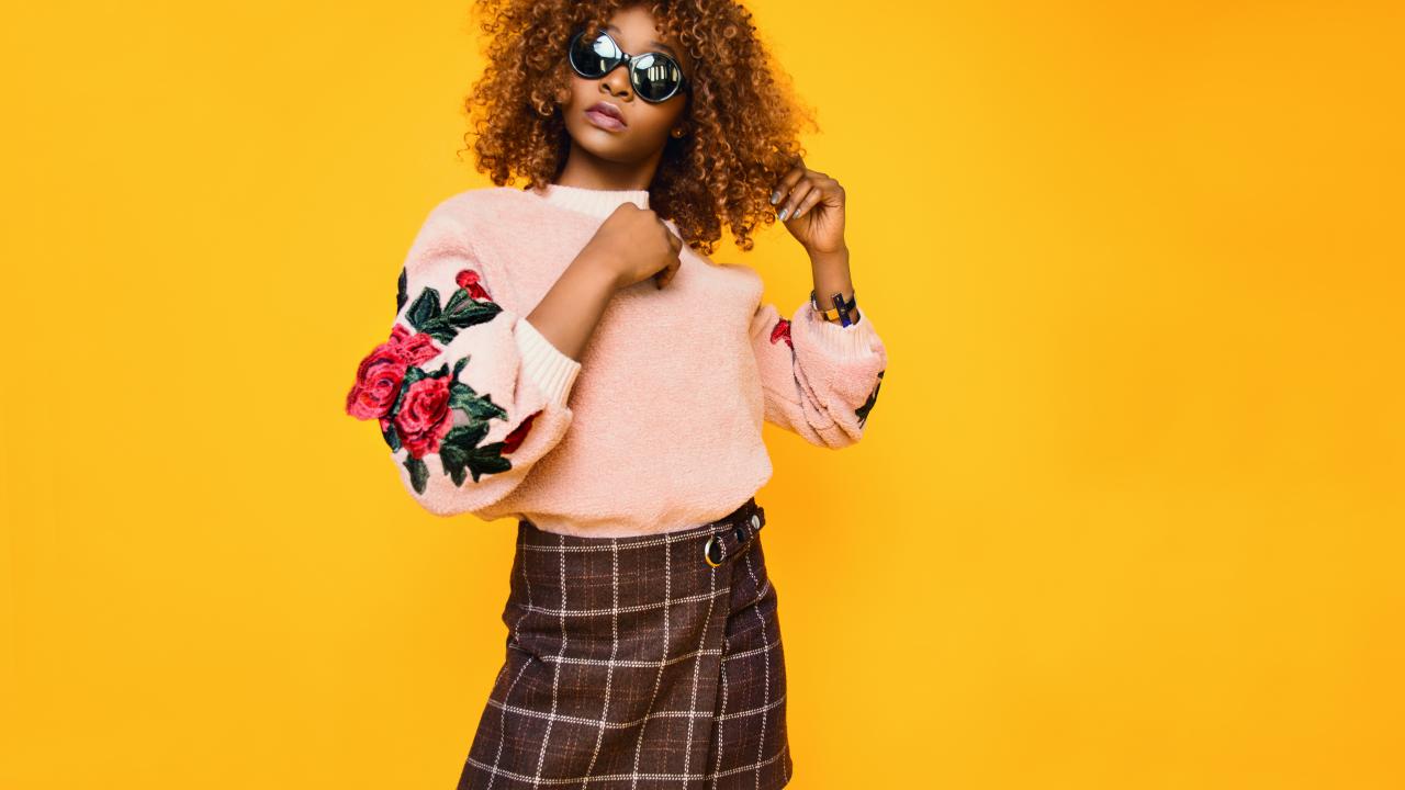 Обои Красивая темнокожая девушка на желтом фоне