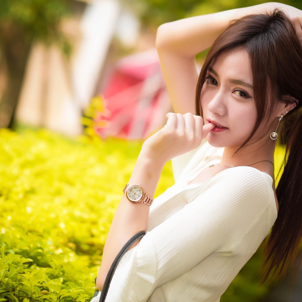Обои Молодая азиатка с часами на руке