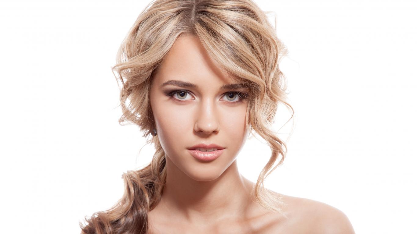 » Обои Нежная блондинка на белом фоне