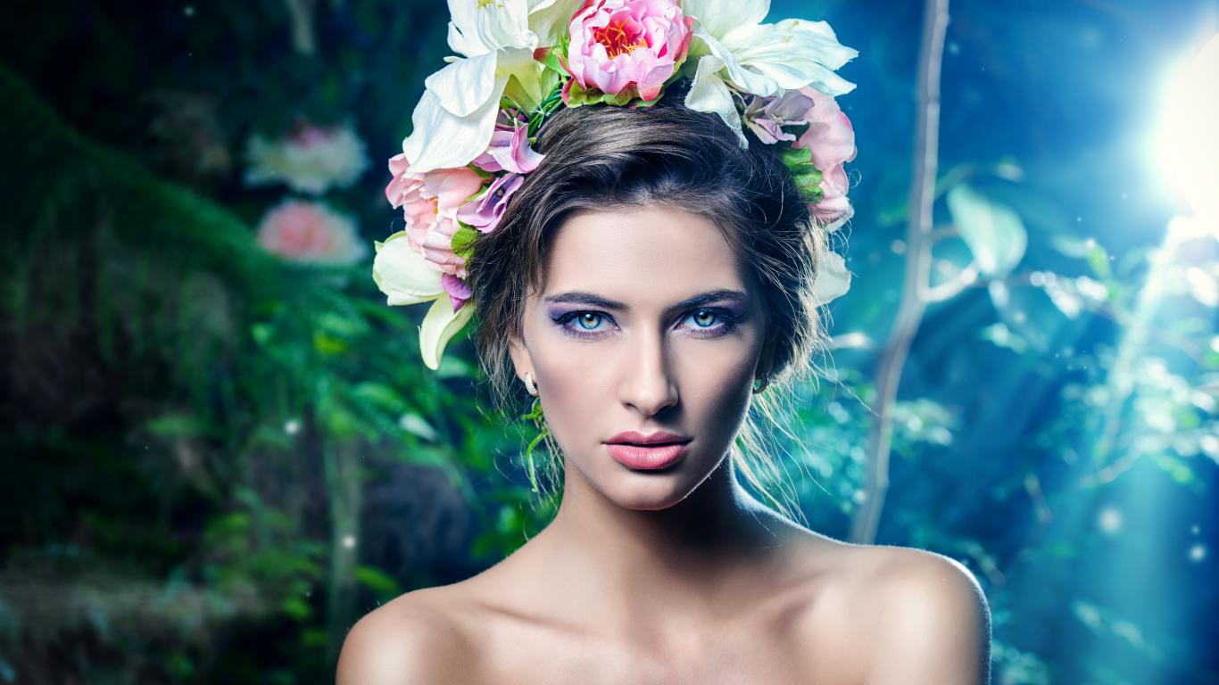 Обои Настоящая девушка с цветами в волосах