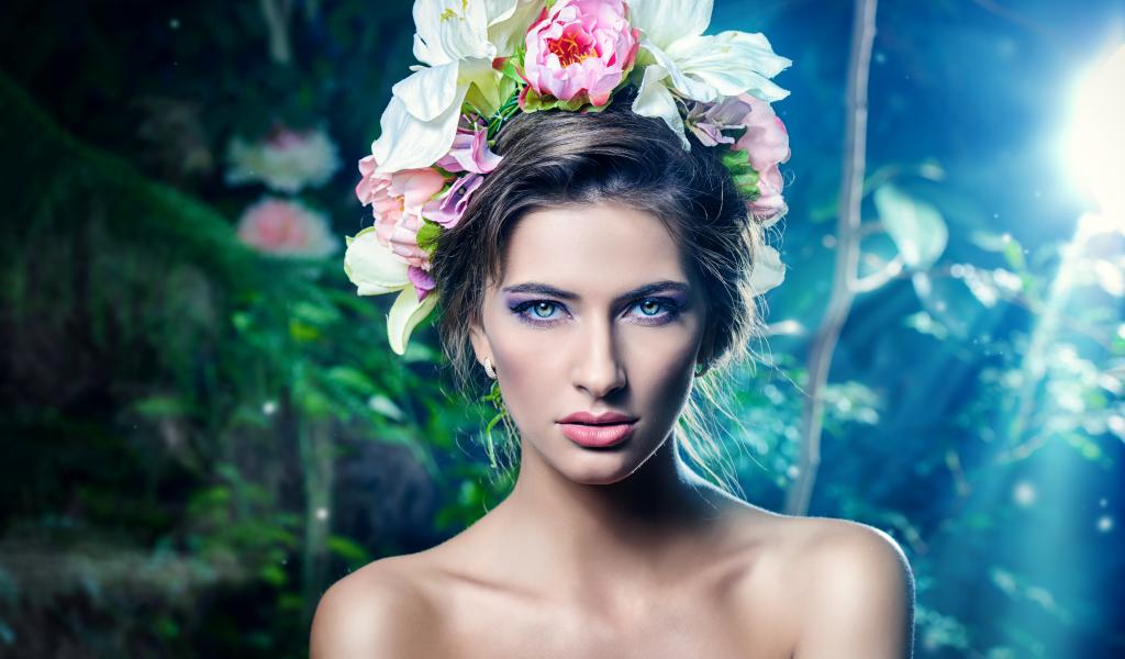Обои Настоящая девушка с цветами в волосах