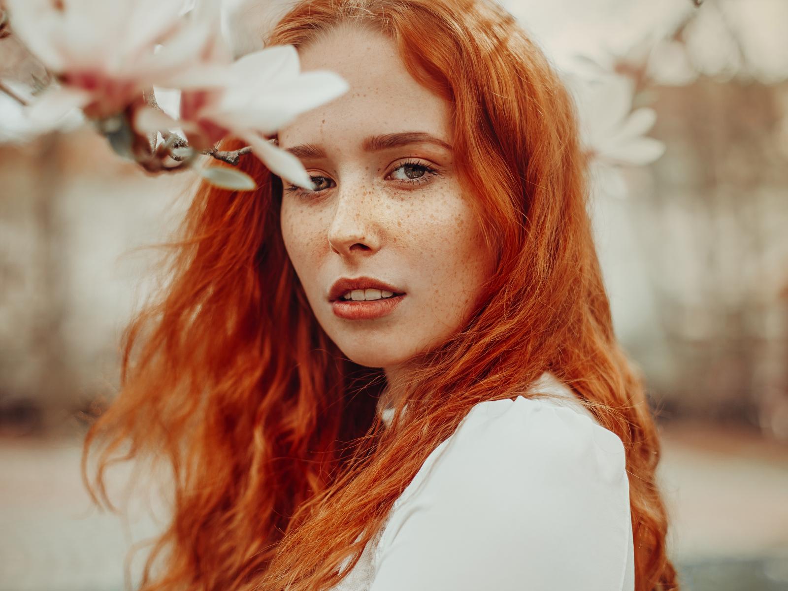 Обои Красивая рыжеволосая девушка с веснушками на лице